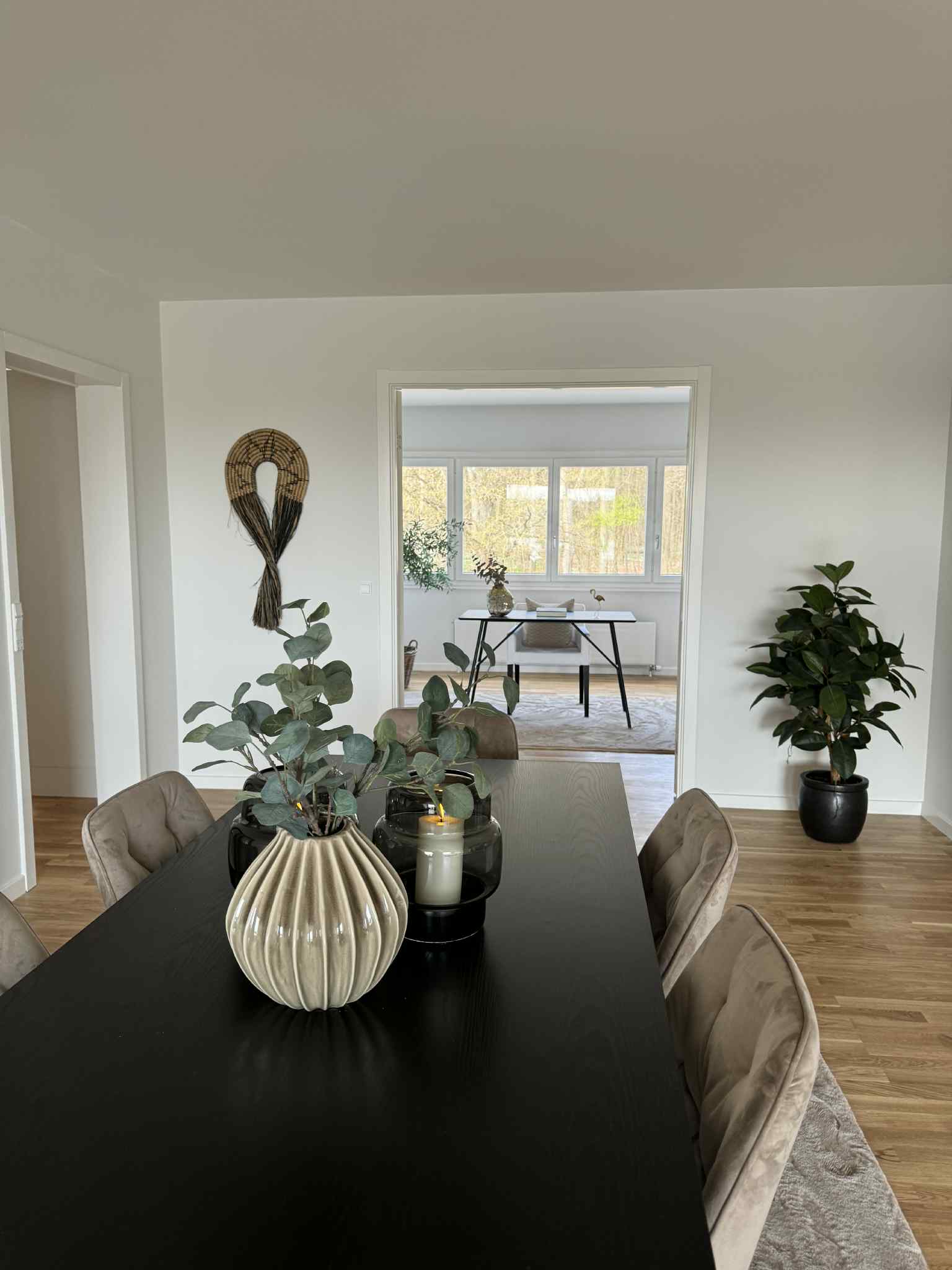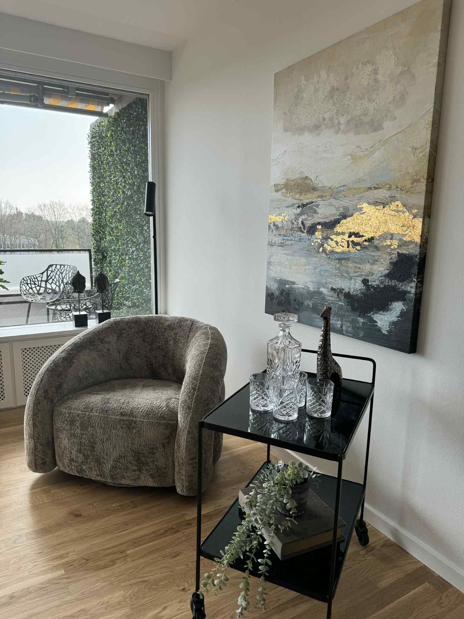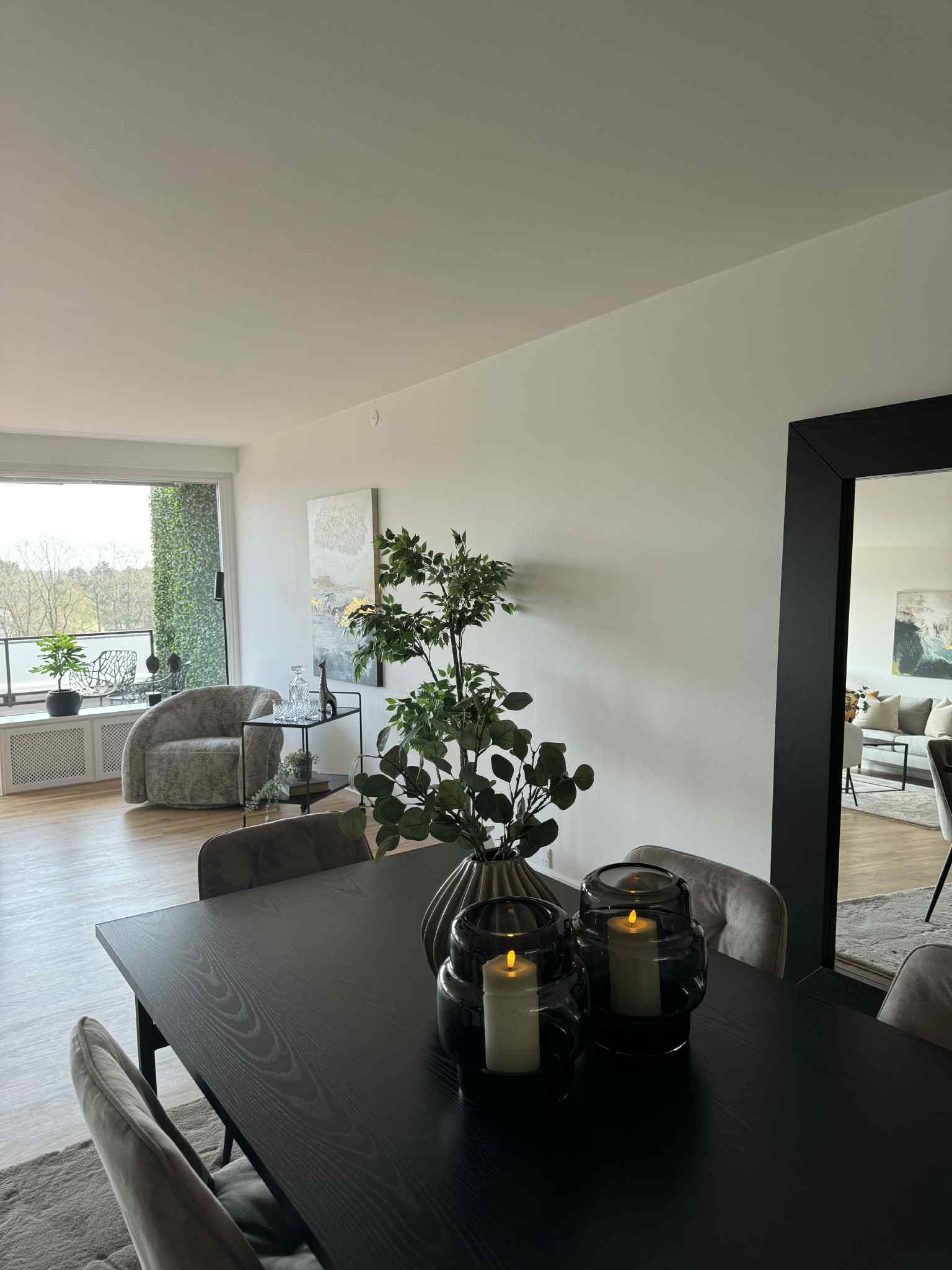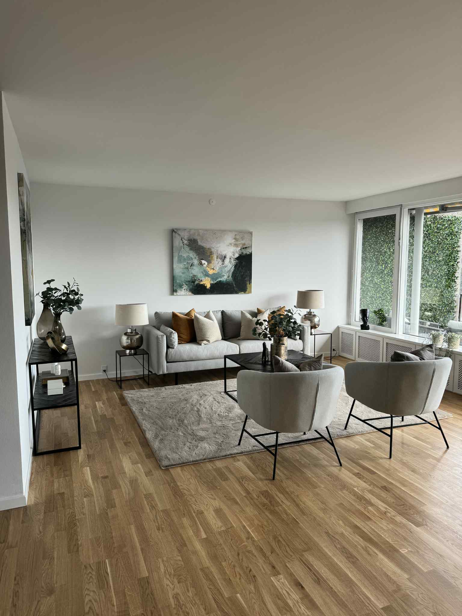 I begyndelsen af september 2024 købte vi en 126 m² stor lejlighed, som trængte til en gennemgribende renovering. Boligen ligger med parkering lige nedenfor og byder på en smuk udsigt til Geelskoven samt en stor altan med elektrisk markise.