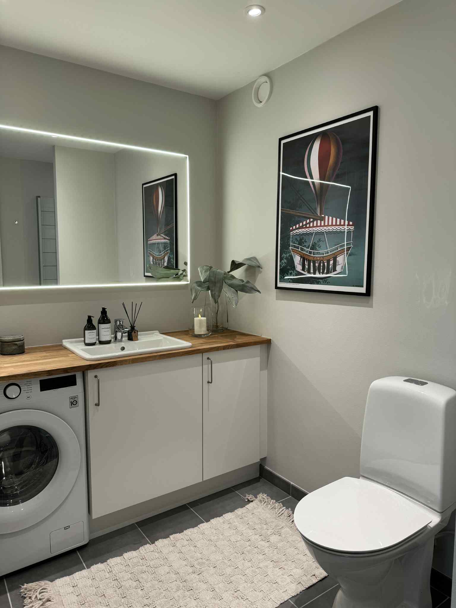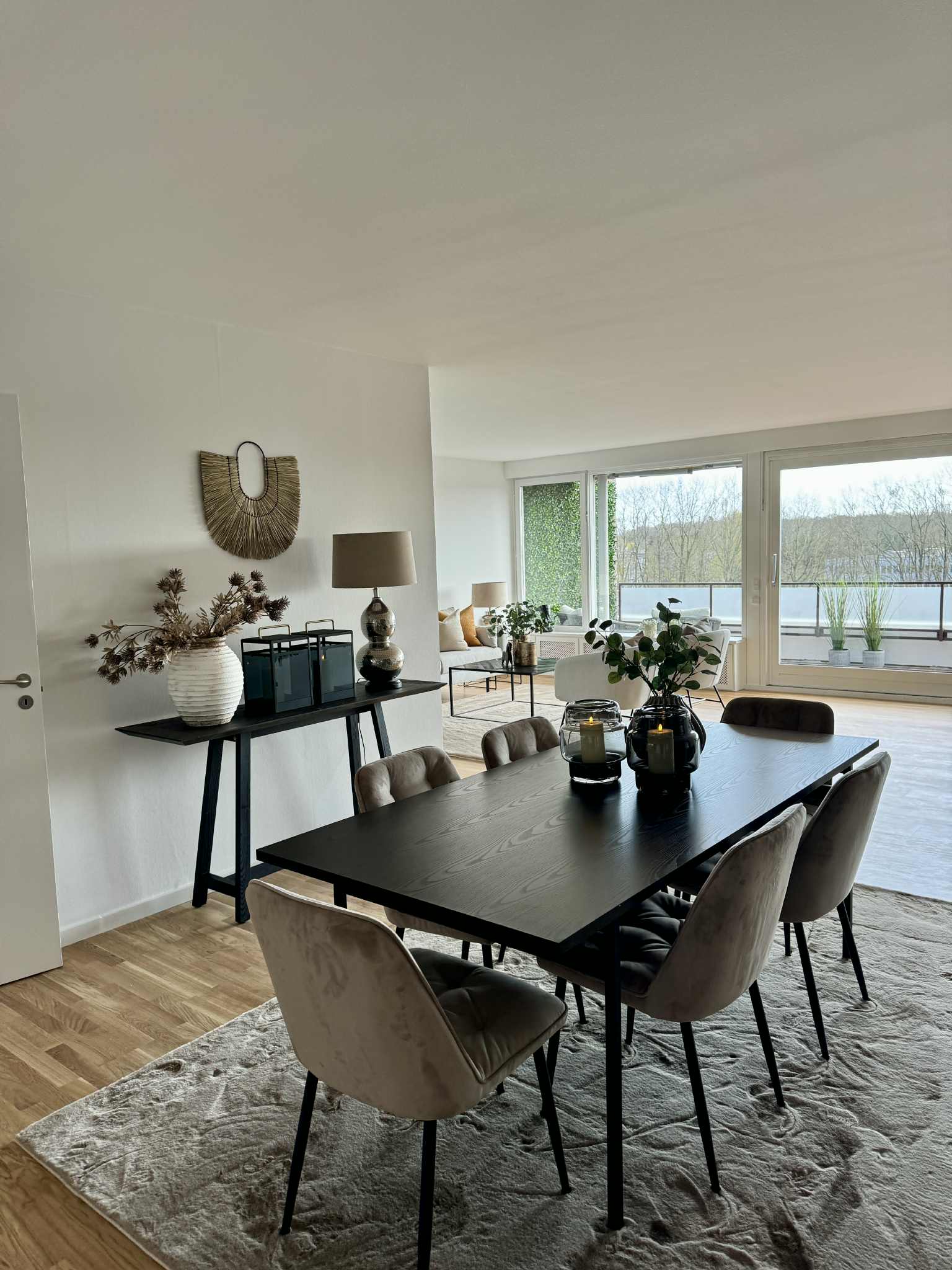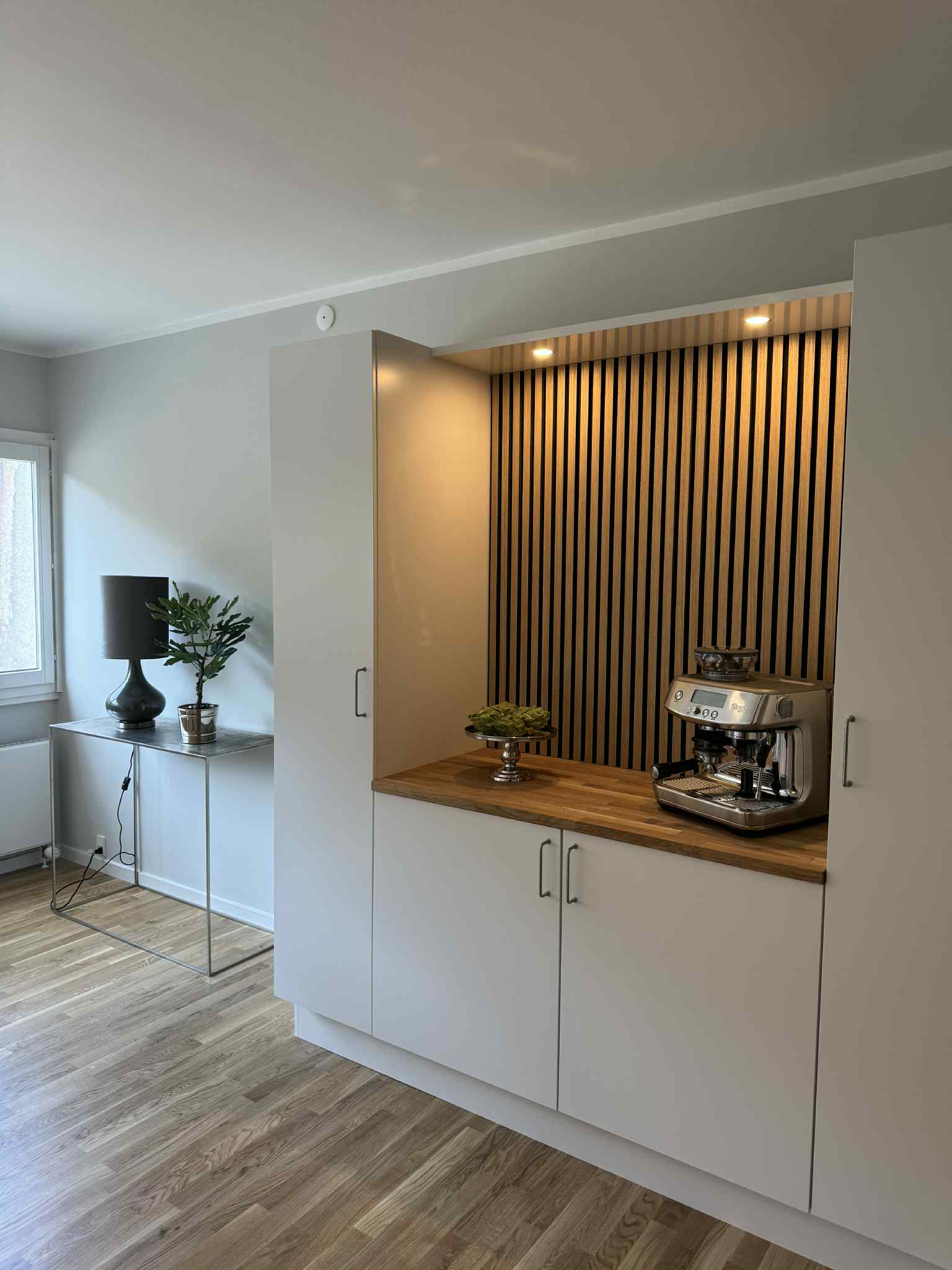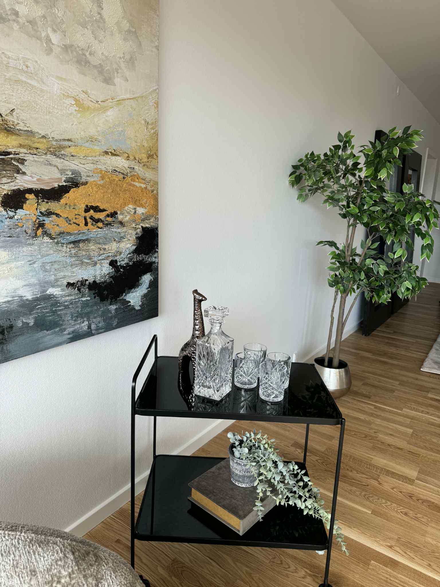 I begyndelsen af september 2024 købte vi en 126 m² stor lejlighed, som trængte til en gennemgribende renovering. Boligen ligger med parkering lige nedenfor og byder på en smuk udsigt til Geelskoven samt en stor altan med elektrisk markise.